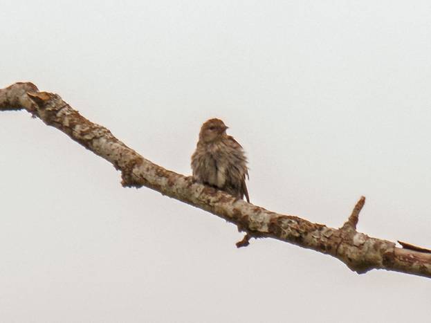 A couple of wet Pine Siskins flew into that same dead snag, and I got this distant picture of a wet Pine Siskin. I guess they had been bathing.
