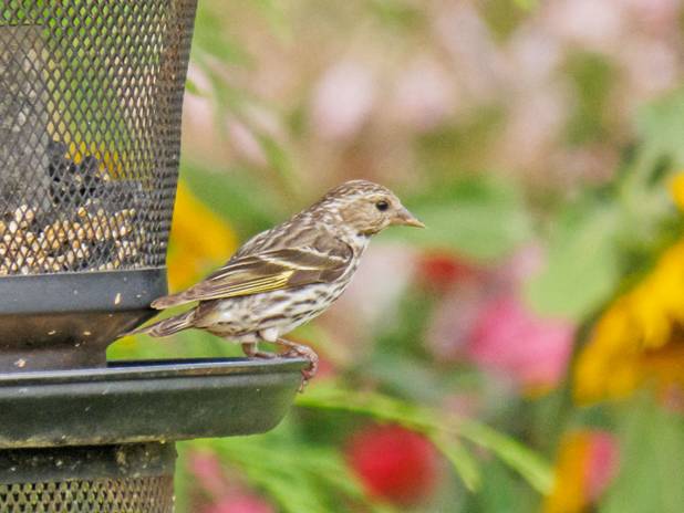 A Pine Siskin flew in to the feeder.