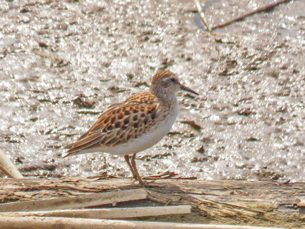 I spotted a larger sandpiper and got a good scope look at a Pectoral Sandpiper, an excellent one to get. Here is a distant picture of the Pectoral Sandpiper.