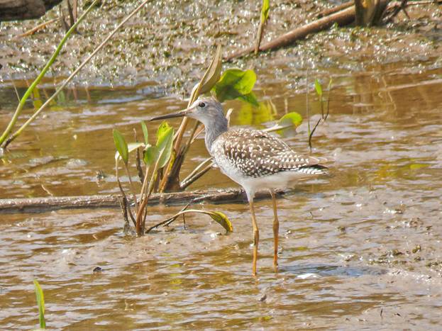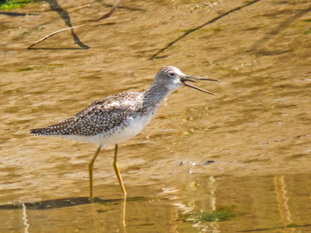 Here is a picture of that Greater Yellowlegs with a smaller Lesser Yellowlegs in the background.