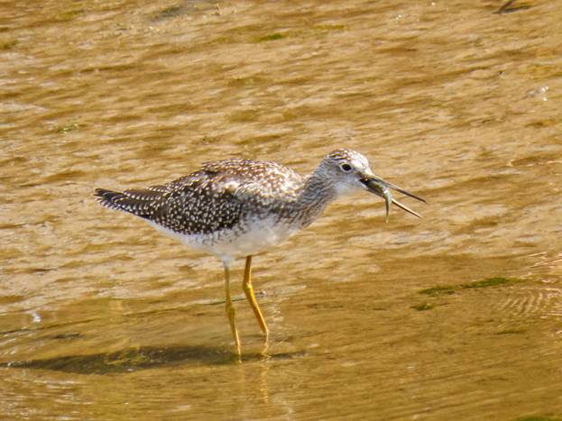 I saw one Greater Yellowlegs, and it had caught a little fish. Here is the Greater Yellow legs swallowing its catch.
