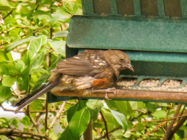 Keeping the juvenile theme going, a juvenile Spotted Towhee came to the feeder.