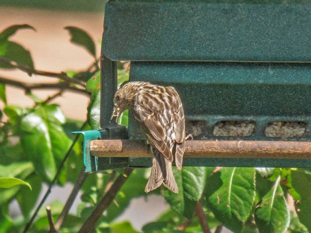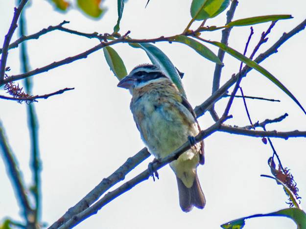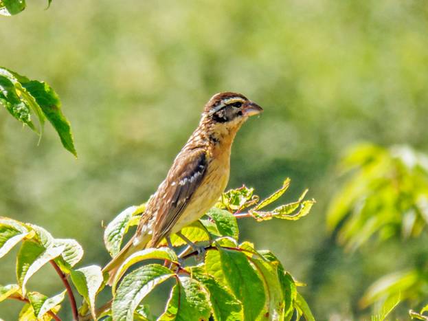 A couple of Black-headed Grosbeaks flew into a bush. I already had that one this month, but I took pictures, anyway. Here is a female Black-headed Grosbeak.