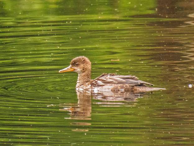 My main target today was American Dipper. I headed out to the Snoqualmie Valley to check my two sites for dippers, but I stopped on the way at the Redmond Retention Ponds. Nothing there, so I moved on to the Redmond Watershed Preserve. I was looking for Hooded Merganser because they have bred there the last couple of years, and I found this juvenile Hooded Merganser for my August list.