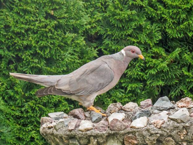 At the house with feeders in Carnation, I added Band-tailed Pigeon to my list. I saw one high in a tree in bad light, but then one flew in to the bird bath for a drink, and I took these next three pictures. Band-tailed Pigeon.