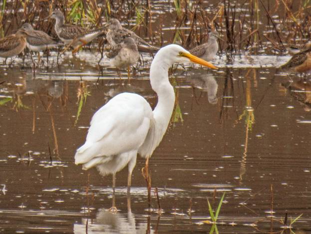 The wetland at 12th St had a lot of shorebirds today. I didn't get anything I needed, but I saw Greater and Lesser Yellowlegs, a number of dowitchers, Least Sandpipers, Western Sandpipers, and one Pectoral Sandpiper.