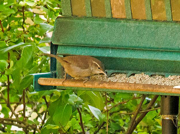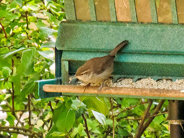 I drove back toward home, and I stopped again at the Tolt River, but again missed on the dipper. While driving across the valley, I saw a couple of Vaux's Swifts high in the sky, and that was an excellent August bird. I never did see Vaux's Swift in July. This afternoon at home, I ate my lunch on the front porch and read my book out there. A Bewick's Wren came to the feeder, so that was one more for August.