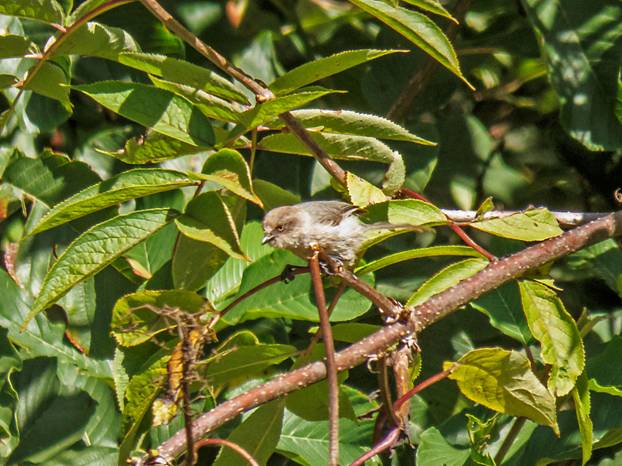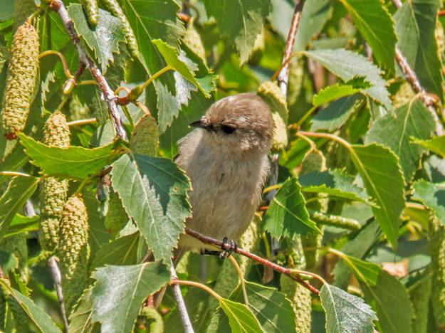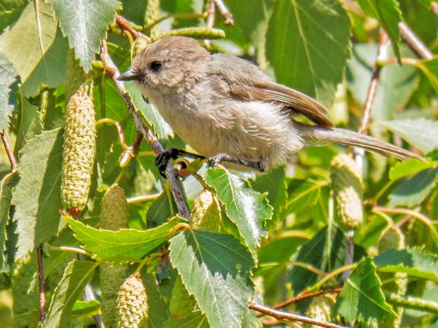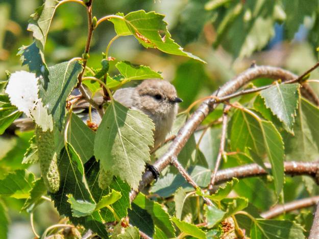 A flock of Bushtits flew by, foraging in the trees as they went along. Here are four pictures of female Bushtits.