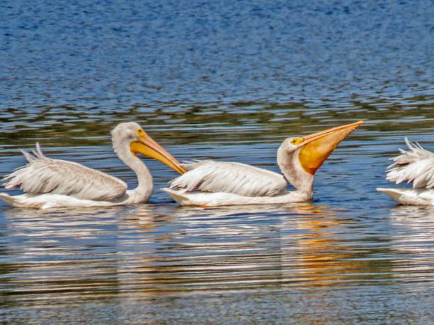 As the ferry pulled in to Clinton, there were some Surf Scoters in the bay, and that was one I needed for August still. On Whidbey Island, I picked up a tuna salad sandwich at Pickles Deli and drove to Deer Lagoon. I carried my scope out to where you can see both the freshwater and saltwater lagoons. There were well over a hundred American White Pelicans out on the freshwater lagoon, so I took pictures of some of the closer ones.