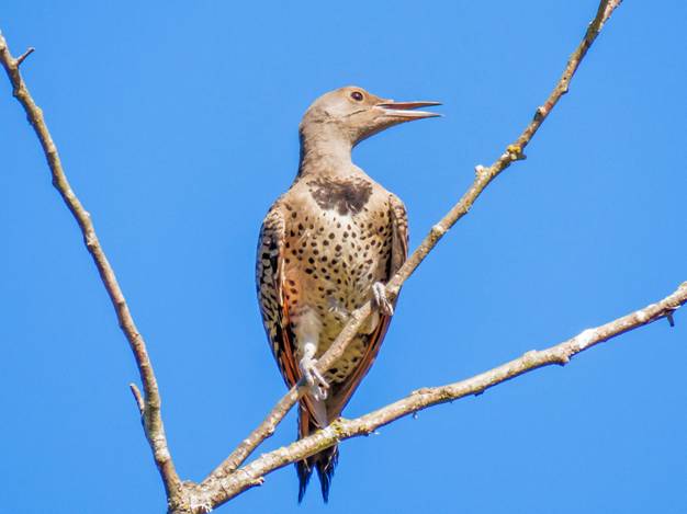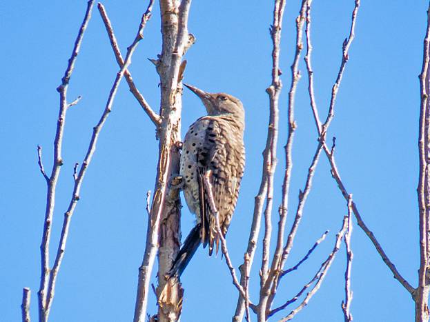 A female Northern Flicker was high in a dead tree.