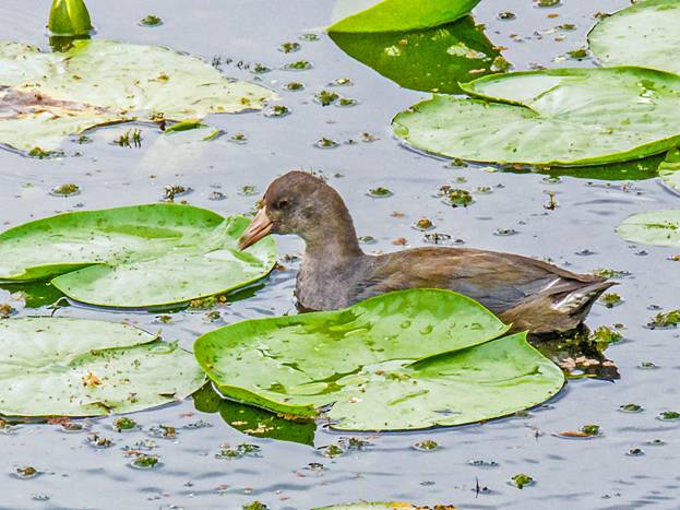 In that picture, the juveniles look more like ducklings. It was only when the mom swam away and the youngsters followed her that I realized it was a mom and her brood.